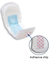 * Packaged: 6bags/16;(96ct) * Sold by case * MSRP: $67.99/case * Color: Blue * Size: 13" x 28" * HCPCS code: T4535 * Advanced core design & fast absorbing blue Stay-Dry improve skin dryness & reduces the potential for leakage,improving odor control,skin health & wearer comfort * A full length adhesive strip for secure anchoring in wearer's own underwear or other fixation pant provides additional wearer comfort & leakage protection * The cut of the pad is contoured to curve w/the body for a more comfortable fit