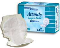 * Packaged: 4bgs42;168/cs;60cs/pallet * MSRP: $87.50/cs * HCPCS code: T4535 * Pink packaging * Attends light pads ultra plus * Pad length: 14.5" * Latex free * Discreet bladder protection * Soft absorbent core w/Hygard polymer absorbs fluid quickly & helps prevent odors * Leg gathers & contoured shape provide superior fit & comfort * White, cloth-like outer cover is soft & discreet * Adhesive peel strip keeps pad firmly in place * Individually wrapped