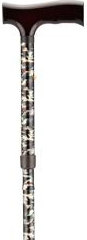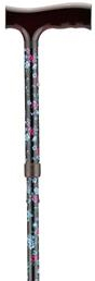 * Packaged & sold by each * MSRP: $20.95/ea * HCPCS code: E0100 * Color: Black w/Small Flowers * 3/4" diameter * Wt. cap: 300lbs. * Tip size: 10018 * Lightweight aluminum * Adjustable from 33"-37" * Ergonomic plastic handles * Fade & chip resistant * Unit wt. 1lb.