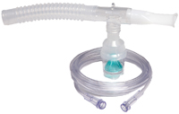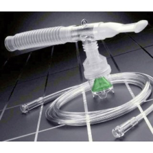 * Packaged: 50/cs;sold by case * MSRP: $108.50 * 72/skid * Nebulizer-Full Kit:Nebulizer,Anti-Drool"T"mouthpiece,6" reservoir tube & 7' supply tube * Nebulizes 3cc within 7 minutes @ 7lpm in horizontal or vertical position * Larger surface area provided by unique convex cone design * Removable green convex cone * Scalloped,bottom cuff design * 1/8 turn screw on cap * 15% medication output * 5-7 min. treatments