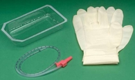 * Sold by case * 50/cs * HCPCS codes: A4624 + A4930 * Latex free * Mini trays w/Catheter & Gloves(Tray is the cup)8Fr(DeLee tip),2 gloves