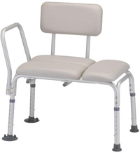 * Packaged: 2 per case * Sold by case * Break case charge: $7.50 * MSRP: $189.95/case * HCPCS code: E0247 * Weight cap: 300lbs. * Unit weight: 11 lbs. * Seat height: 18.5"-22.5" * Seat dimensions: 23"w x 15.5"d * Overall dimensions: 30"w x 16"d * Converts easily for left or right hand transfers * Padded seat & back add comfort when bathing * Non-skid suction tips * Anodized aluminum frame * Removable back