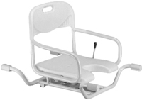 * Packaged & sold by: each * MSRP: $449.95 * Wt. cap: 250lbs. * Width between arms: 18.5" * Seat dimensions: 16"w x 16"d * Overall dimensions: 27.5"-34"w x 22.5"d * Swivels 360 degree & locks into 4-90 degree positions * Allows patient to be transferred into the seat & swiveled into showering position * 3ht positions(separate 2" & 4"ht adj. attachments avail. separately) * Unit weight: 10lbs.
