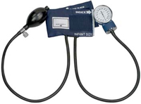 * Sold by each * MSRP: $25.70/ea * Caution: this product contains natural rubber latex,which may cause allergic reactions * Color: Blue * Cuff class: Infant * Limb range: 5"-7.5" * Bladder: 2.35" x 4.72" * Cuff dim: 10.5"w x 3"h * 2 tube bladder * Large knurled air release valve for precision deflation * Deluxe end valve reduces dust build-up * Pressure measurement from 20 mmHg to 300 mmHg * Lifetime calibration warranty * Zippered carrying bag is included