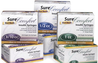 * Packaged: 100/bx;sold by box * Designed for injection ease & comfort * 30g syringe holds 1cc's of insulin & uses a 5/16" lubricated needle for a comfortable injection * Easy to read markings * Big grip for better control
