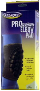 * Packaged & sold by each * MSRP: $18.70/ea * Size: Large * Elbow: 10-11" * Impact resistant foam pad * Contoured,streamlined for a better fit * Lightweight protection * Recommended treatment of mild sprains & strains * Protection of sudden impact related w/sports activities