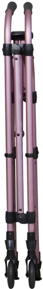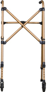 * Packaged & sold by: 2/cs * MSRP: $225.00/case * HCPCS code: E0135 * Combination of folding walker & rising aid all in one * Secondary handles provide stable assistance from a seated to a standing position * Attractive,upscale Onyx finish * Single release folding mechanism is designed to aid users w/limited hand dexterity * Can be used as a portable toilet safety frame * Durable aluminum tubing provides strength while remaining lightweight * Adjustable height fits a broad range of user heights * Contoured, plastic grips for enhanced comfort & a secure hold * HCPCS code: E0135 * Includes laminated color operating instructions * Limited lifetime warranty * Width inside handgrips: 18" * Width inside rear legs: 23" * Overall width: 26" * Depth front to rear: 20" * Depth folded: 4.5" * Minimum height: 32" * Maximum height: 39" * Approx. user height: 5'4"-6'2" * Weight cap: 400lbs. * Product weight: 5.5lbs.