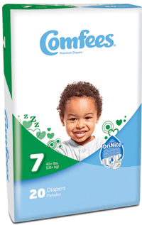 * Packaged: 6bgs of 26;156/cs * HCPCS code: T4531 * Up to 34lbs. * Soft stretchable sides * Easy to tear sides * Wetness indicator * Fun design * Soft outer cover * 12hr protection