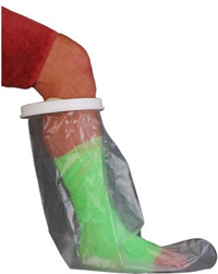 * Sold by each * MSRP: $20.95/ea * Dim: 19"l x 7"w * Reusable long plastic cast & bandage protector * Plastic ring & diaphragm create a tight seat that prevents water from entering inside * Keeps water from casts or bandages when showering or bathing * Latex free