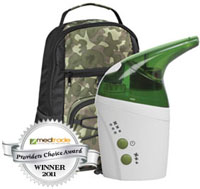 * Packaged & sold by each * MSRP: $151.00/ea * Color: Green * Includes: mouthpiece,extension tube,connector,nasal piece,adult & child mask,medication cups,air filters,nebulizer stand,rechargeable battery pack,ac & dc adapters,camouflage tote bag * 5 year limited warranty * Handheld & lightweight * 3 options for nebulization rate * Particle size range: 1-10 microns * Automatic shut-off after 10 minutes * Treatment time within 6 minutes for most medications