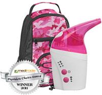 * Packaged & sold by each * MSRP: $151.00/ea * Color: Pink * Includes: mouthpiece,extension tube,connector,nasal piece,adult & child mask,medication cups,air filters,nebulizer stand,rechargeable battery pack,ac & dc adapters,camouflage tote bag * 5 year limited warranty * Handheld & lightweight * 3 options for nebulization rate * Particle size range: 1-10 microns * Automatic shut-off after 10 minutes * Treatment time within 6 minutes for most medications