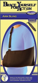 * Packaged & sold by each * MSRP: $6.65/ea * The Brace Yourself for Action Arm Sling is fabricated from quality denim material & features a comfortably soft padded shoulder strap * Universally sized this arm sling fits most arms * For post-surgery immobilization or to aid in the recovery of arm injuries * Support for mild sprains & strains