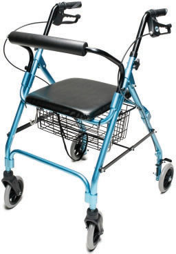 * Packaged & sold by each * MSRP: $200.00/ea * HCPCS code: E0143;seat: E0156 * Rollator includes padded seat,backrest for extra comfort,ergonomic hand grips,& easy-to-operate hand brakes * Color: Aqua * Unit wt: 12 lbs. * Width inside handgrips: 19" * Overall width: 24" * Overall depth: 26.5" * Seat width: 14" * Seat depth: 13.5" * Seat height: 21" * Caster diameter: 6" * Min. handle height: 32" * Max. handle height: 37" * Wt cap: 300 lbs. * Approx. patient ht: 5'3"-6'2" * Epoxy-coated aluminum frame * Locking loop brakes * Removable wire storage basket * Adjustable handle height * 6" whls for indoor or outdoor use * Folds quickly & easily into a compact unit for storage or transport * Incl. laminated color operating instructions * Warranty: * Limited lifetime on frame;1yr on seat;6mo. on brakes;6mo. on ht adjustment knob;6mo. on basket/bag/pouch;6mo. on back bar;3mo. on casters;3mo. on handgrips