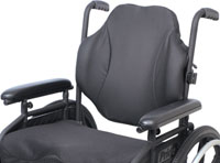* Sold by each * MSRP: $574.00/ea * HCPCS code: E2611 * For w/c size: 17-19" * 22" tall * 2.25" thick * Wt. cap: 300lbs. * Sleek new pad design offers scapular & hip relief for improved range of motion * New spinal relief design removes pressure from the spine * Wings provide lateral positioning & protection from the canes * High resiliency foam comfortably contours to the user's anatomy