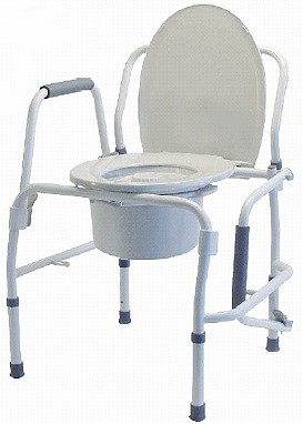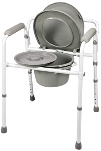* Sold by case;4/cs * BCC will apply $7.50 * MSRP: $350.00/cs * HCPCS code: E0163 * Versatile 3-1 design can be used as a bedside commode,raised toilet seat or toilet safety frame * Welded steel construction provides strength & stability * Folds flat for convenient storage & travel * Sturdy plastic seat snaps-on easily * Comes complete w/commode pail,cover & splash shield * Limited lifetime warranty * Wt. cap: 300lbs. * Width between arms: 18" * Overall width: 22" * Seat width: 13 1/2" * Seat depth: 14 1/2" * Seat ht range: 17"-23" * Replacement tip: LX9141