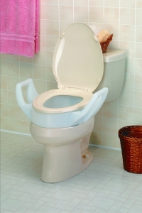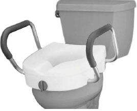 * Packaged & sold by each * MSRP: $86.99 * Large molded arms for security & support * Raises toilet seat height by 3-1/2" * Designed to be used w/an existing toilet seat & lid * Durable & easy to clean * Mounting bolts & easy to follow instructions included * Arm height: 7-1/4" from rim of bowl * Width between arms: 19" * Weight: less than 4lbs. * Weight cap: 300lbs.