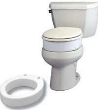 * Sold by each * MSRP: $40.95/ea * Wt. cap: 250lbs. * Unit weight: 3lbs. * Overall dimensions: 14.5"w x 19.5"d * Aperture dimensions: 10"w x 13.5"d * Bolts directly to toilet for added safety * Adds 3 1/2" to the height of toilet seat to aid in sitting & rising * Design allows original seat lid to be used,unlike most elevated seat aids * Installs easily & includes all necessary hardware(standard screwdriver required)