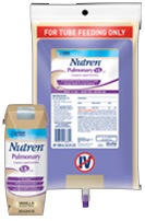 * 24-250 mL cartons/case * Sold by case * Flavor: Vanilla * HCPCS code: B4154 * 375 calories * Appropriate for lactose-free,gluten-free,low-residue,low-cholesterol & kosher * Low carb to help reduce CO2 production & respiratory quotient * High cal to meet elevated energy requirements in a low volume * Elevated protein to support lean body mass * Micronutrient profile rich in antioxidants to address the needs of pulmonary patients * Elevated phosphorus content to help replenish low serum phosphorus concentrations * Balanced lipid profile to facilitate tolerance * Complete tube feeding or oral supplementation * Nutritional support of pulmonary disease