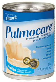 * Sold by case * Packaged: 8-fl-oz.(237ml)can/24/cs * Serving size: 237mL * 355 calories/serving * HCPCS code: B4154 * Institutional * High-calorie,low-carbohydrate formula designed to help reduce diet-induced carbon dioxide production,which may be helpful for patients w/chronic obstructive pulmonary disease,cystic fibrosis,or respiratory failure * For tube or oral feeding