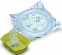 * Packaged & sold by each * MSRP: $17.99 * Ideal for bed use * Easy to inflate and clean * Made of heavy-duty vinyl,21"w x 3"d * Includes plastic inflatable ring,plastic basin,& plastic carrying bag * 28" long drain tube for easy draining * Available shrink wrapped or individually boxed