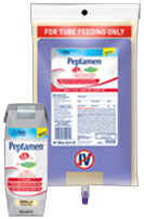 * 24-250 mL cartons/case * Sold by case * Unflavored * HCPCS code: B4153 * 300 calories * Appropriate for lactose-free,gluten-free,low-residue,low-cholesterol * 4g Prebio/L to help support healthy gut microflora * Balanced peptide profile to support nitrogen absorption & utilization * 100% whey-based to facilitate gastric emptying * High MCT level to decrease potential for fat malabsorption * Peptamen contains ingredients (i.e. partially hydrolyzed whey protein, from cow's milk protein) that may not be appropriate for individuals w/food allergies * Ideal for oral nutrition support of patients w/impaired Gl function * Tube feeding: early enteral feeding, transition from TPN,diarrhea management