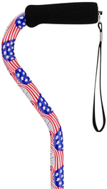 * Priced by each;sold by case * No break case charge * MSRP: $29.95/ea * HCPCS code: E0100 * Color: US Stars & Stripes * Lightweight & adjustable offset canes feature soft synthetic rubber handles & a convenient carrying strap * Adjustable height: 30"-39" * Diameter: 7/8" * Weight capacity: 300 lbs. * Weight: 1 lbs. * Tip size: 10018 * Fade & chip resistant * Limited lifetime warranty all other parts 1yr.(Handgrips,straps & tips)