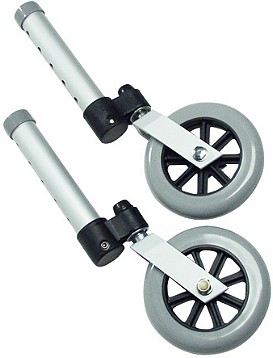 * Packaged & sold by pair * MSRP: $40.00/pr * HCPCS code: E0155 * Converts standard walker into wheeled walker * Eight adjustment holes to accommodate a broader range of user heights * Fixed wheels attach to the front of walkers only & are recommended for use w/Lumex glide brakes * Comes complete w/glide covers * Wt. cap: 300lbs. * Designed to fit 1" standard walker tubing * Limited lifetime warranty