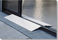 * Sold by each * MSRP: $54.95/ea * Non-skid surface * Lightweight yet durable free-standing ramp designed for doorways,sliding glass doors,& raised landings * Interchangeable components,easily accommodates thresholds from 3/4" to 6" high * This seam-free ramp is 34" wide & ideal for use w/wheelchairs,walkers,& cane users * Made of anodized aluminum & is intended for indoor/outdoor use * Usable size: 1"h x 6 1/2"l x 34"w * Unit weight: 3lbs. * Wt. cap: 600lbs. * Usage guidelines: 3/4"-1 1/4" rise * 3 year warranty
