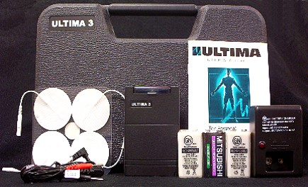 * Packaged & sold by kit * MSRP: $98.99 * Lifetime warranty * Kit contains:1 ultima 3 unit,5 reusable self com-patch electrodes,2 cords,carrying case,1 mitsubishi super heavy duty battery,2 nickel cadmium rechargeable batteries,battery charger,& users guide * Meets HCPCS Code: E0730 * Has 4 leads * Dual channel * Uses 4 patches * Electrodes use: 10-15 uses per pad