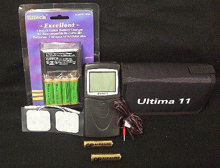 * Packaged: 1 kit * Sold by: each kit * Kit includes: carrying case, 2 batteries, cord, 4 electrodes, ultima 11 digital tens