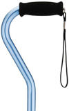 * Packaged 2/cs;sold by case * Break case charge: $7.50 * MSRP: $23.95/ea * HCPCS code: E0105 * Color: Silver * Small base * Lightweight design & low center of gravity combine for greater stability & balance * The offset handle rotates for use w/either the left or right hand * Height adjust: 29"-38" * Diameter: 7/8" * Wt. cap: 250 lbs. * Unit wt: 2 lbs. * Tip size: 50012 * Replacement hand grip: P42023 * Limited lifetime warranty all other parts 1yr.(Handgrips,straps & tips)
