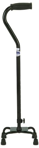 * Packaged: 2 per cs;sold by cs * Break case charge: $7.50 * MSRP: $23.95/ea * HCPCS code: E0105 * Color: Black * Small base * Lightweight design & low center of gravity combine for greater stability & balance * The offset handle rotates for use w/either the left or right hand * Height adjust: 29"-38" * Diameter: 7/8" * Wt. cap: 250 lbs. * Unit wt: 2 lbs. * Tip size: 50012 * Replacement hand grip: P42023 * Limited lifetime warranty all other parts 1yr.(Handgrips,straps & tips)