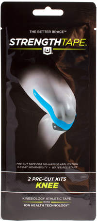 * Sold by pack * MSRP: $11.00/pk * For knee * Enhanced w/exclusive ion Health Technology * StrengthTape provides support & stability for muscles,joints,& tendons w/o limiting range of motion like a traditional brace * StrengthTape goes beyond the benefits of common athletic tape by infusing Ion Health Technology * Studies suggest that ions may help you feel better & increase energy