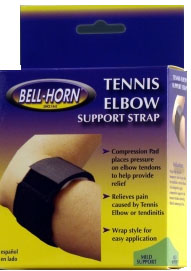 * Packaged & sold by each * Size: Unversal * Forearm: up to 17.5" * MSRP: $14.40/ea * Provides comfortable,firm support to stiff or aching elbows * Has an easy to adjust hook & loop closure * Compression pad places pressure on the elbow tendons to help provide relief * This strap helps provide temporary relief or pain due to tendinitis or tennis elbow
