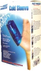 * Packaged & sold by each * Size: Universal * MSRP: $17.90/ea * Premium cold therapy sleeve gently rolls on your finger * The sleeve design is easy to use & stays in place * The 360-degree coverage treats the entire circumference of the injured area,delivering cold therapy deep into soft tissues where its needed * Our premium medical grade materials stay ultra soft when chilled,allowing the FastFreeze Cold Sleeve to mold to the body * Together,these features reduce treatment time,provide faster pain relief,keeps swelling to a minimum,& greatly increase overall effectiveness * Latex free & non toxic * Reusable * Includes insulating compression bandage to protect the skin from extreme temperatures * It also supplies slight compression,allowing the FastFreeze Cold Sleeves to address 2 of the 4 steps in the RICE(rest,ice,compression,elevation)method of injury treatment * Relief for: Dislocations,Ligament injuries,Tendon injuries,Nerve injuries,Jammed fingers